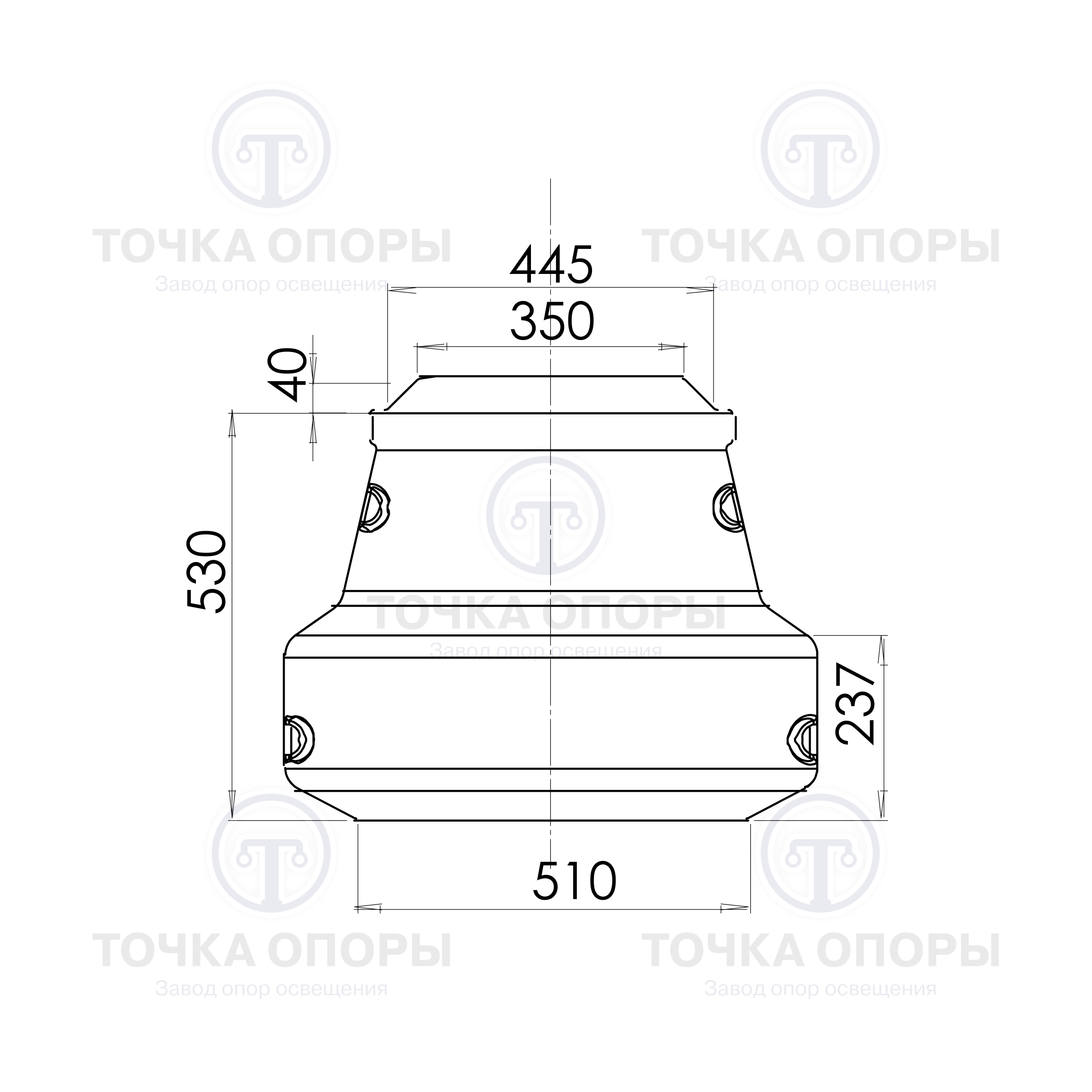 Верхний диаметр: ⌀ 350-445 мм.