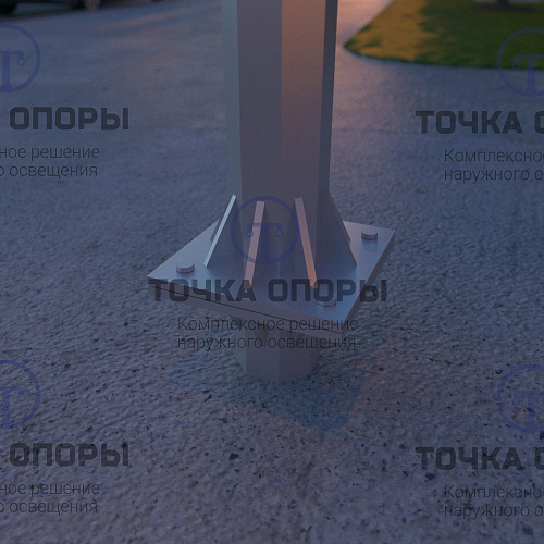 Установка при помощи фланца позволяет легко демонтировать опору освещения для переноса или замены. Крепление опорв П-ФГ к закладной детали производится на уровне земли, при помощи метизов.