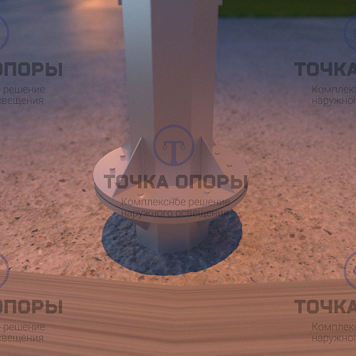 Установка при помощи фланца позволяет легко демонтировать опору освещения для переноса или замены. Крепление опорв П-ФГ к закладной детали производится на уровне земли, при помощи метизов.